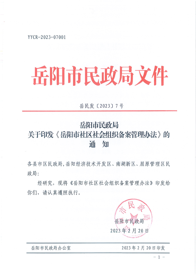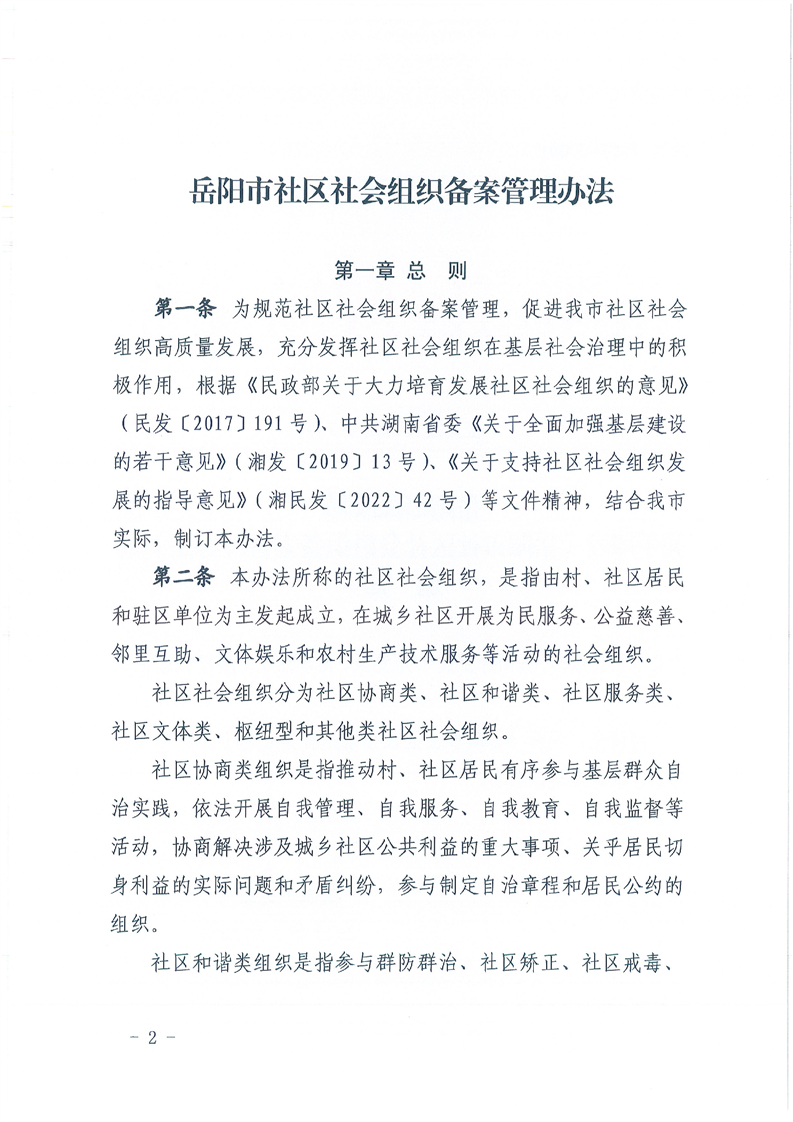 关于印发《岳阳市社区社会组织备案管理办法》的通知