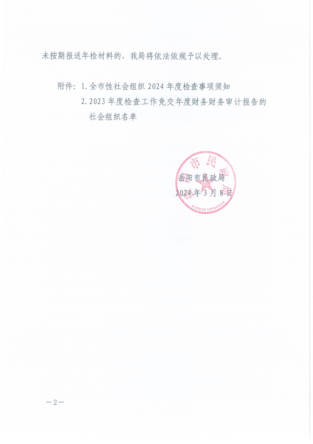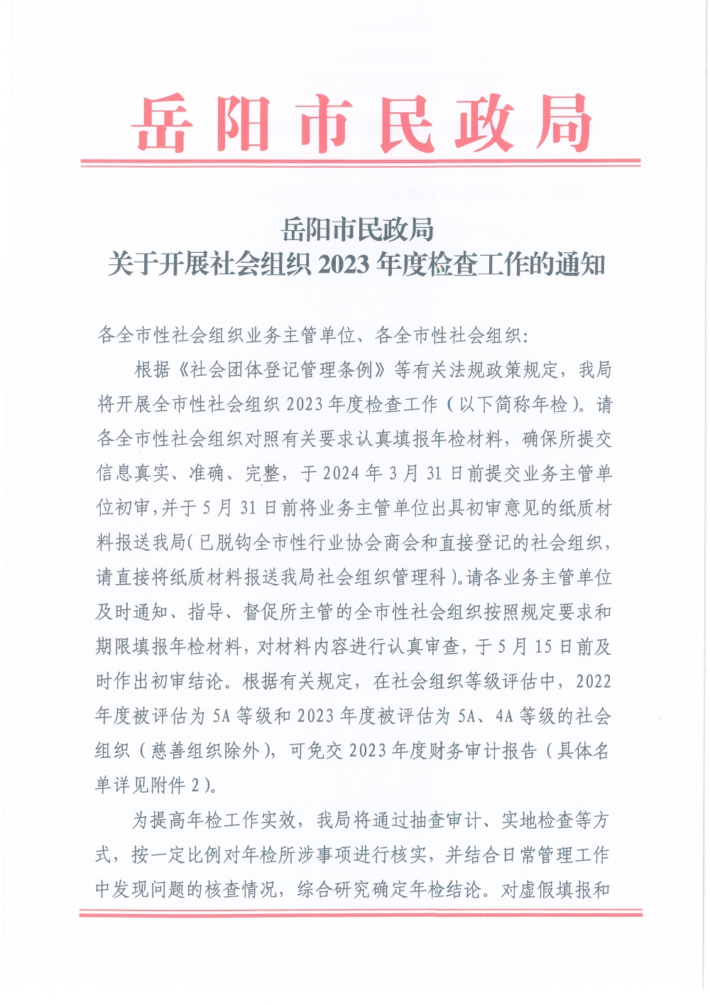 岳阳市民政局关于开展社会组织2023年度检查工作的通知