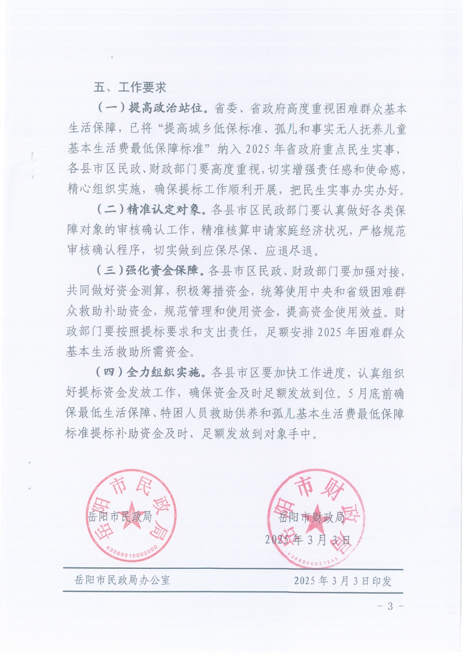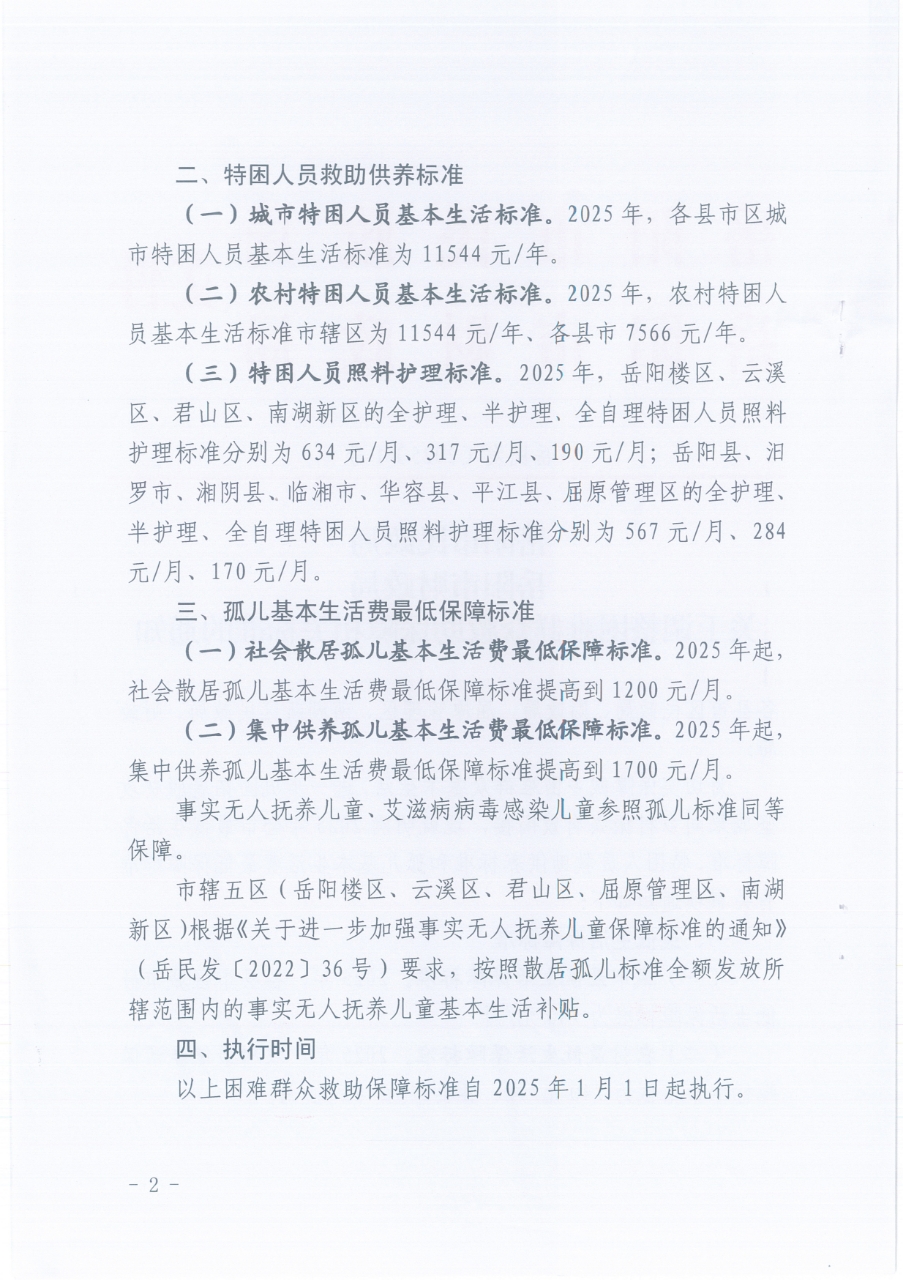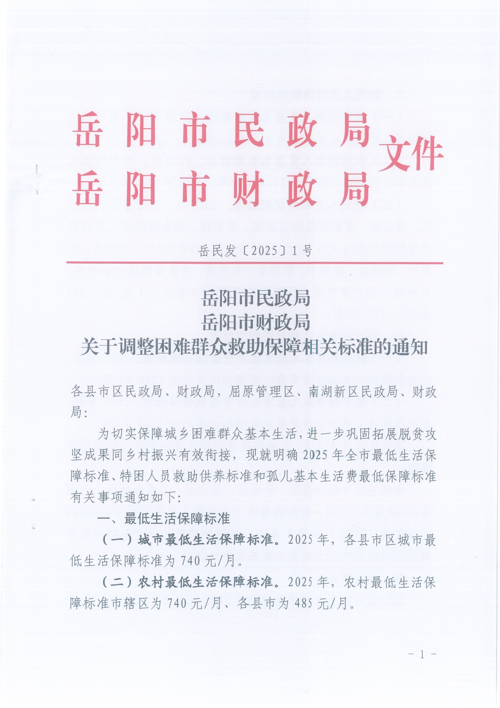 岳阳市民政局 岳阳市财政局 关于调整困难群众救助保障相关标准的通知
