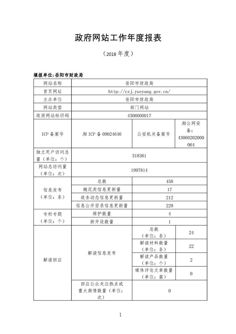 岳阳市财政局网站工作2018年度报表