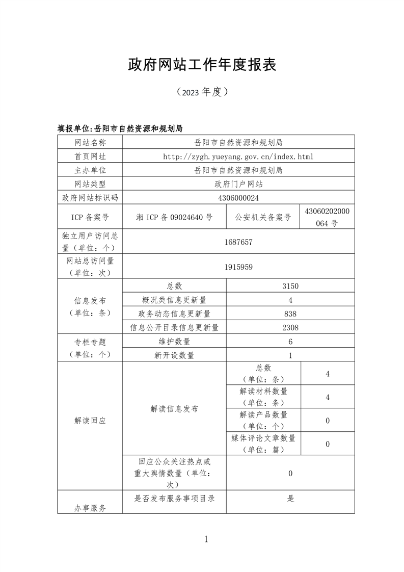 岳阳市自然资源和规划局2023年政府网站工作年度报表