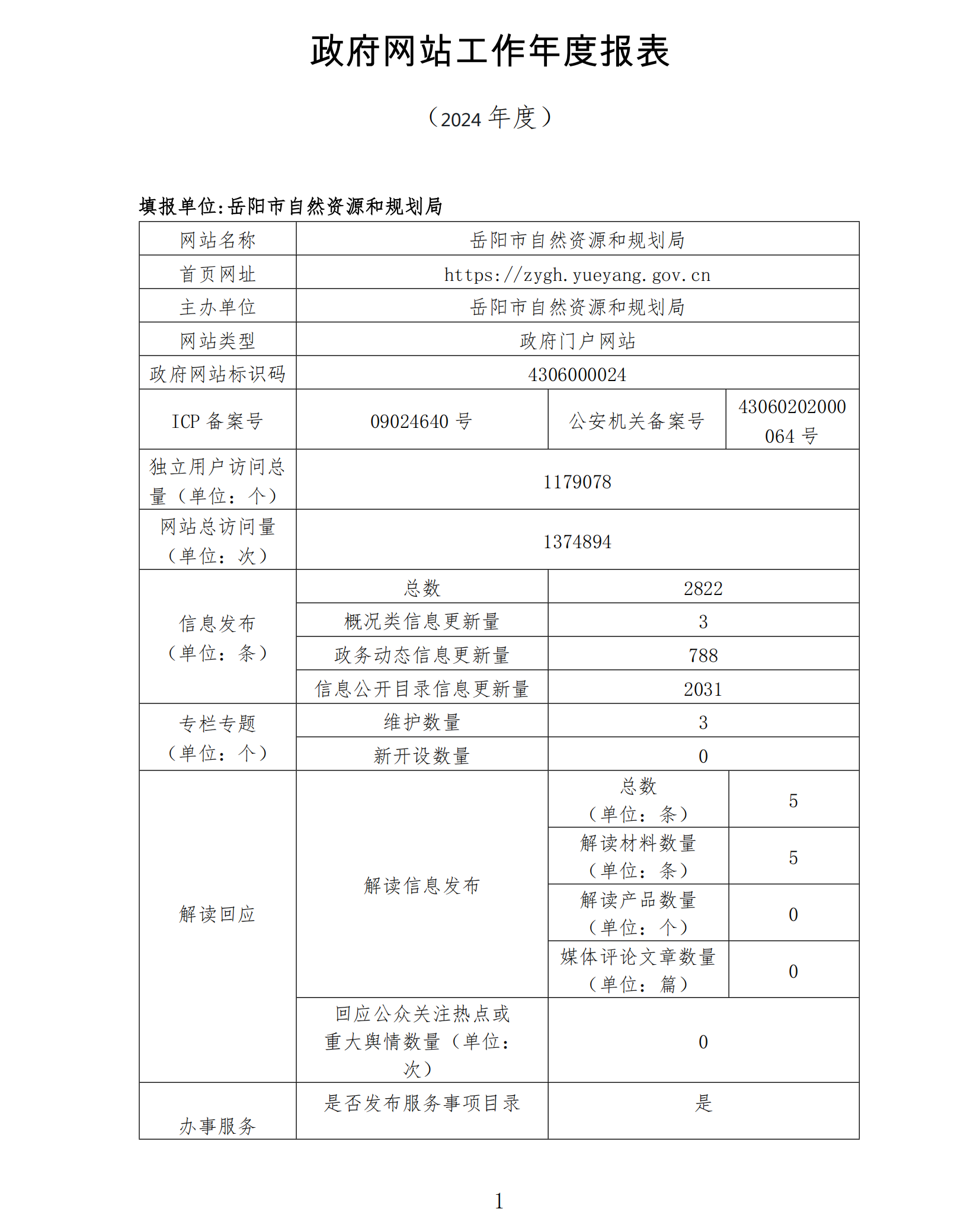岳阳市自然资源和规划局2024年政府网站工作年度报表