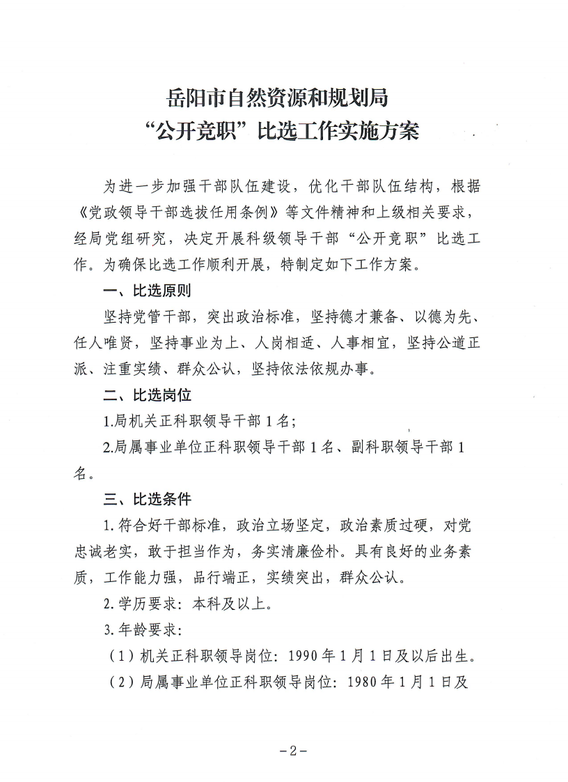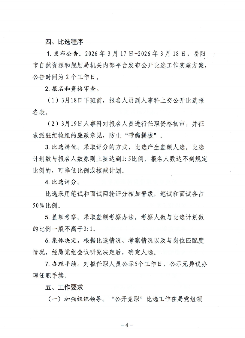 市资规局"公开竞职"比选工作方案