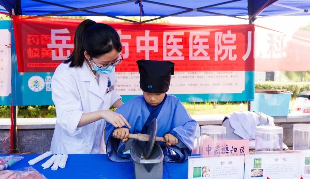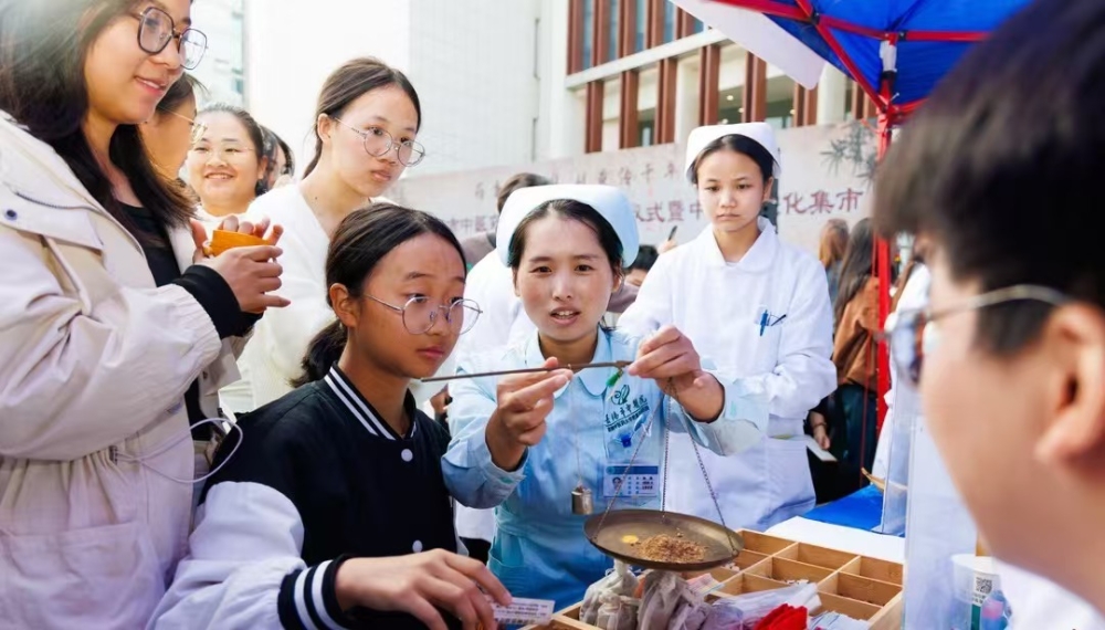 活动现场,岳阳市中医医院组织各个科室开设中医药文化中医集市,邀请中医名师现身说中医,免费进行“一对一”把脉问诊,进行辨识体质、辨证开方、答疑解惑、交流互动,还进行中医药文化艺术展演,吸引众多年轻人参与。