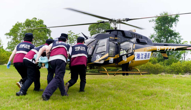 针对复杂灾情形势,演练开辟了水上救援和空中救援通道,形成水、陆、空多维度一体化救援力量,为极端情况下的紧急医学救援赢得了宝贵时间。演练中,无人机勘探、评估、搜救及投送血液制品、5G远程会诊、ECMO急救等高科技装备及技术的应用,展现了湖南在智慧医疗应急领域的创新成果。省人民医院院长肖亚洲介绍:“我院作为国家紧急医学救援队,始终将紧急医学救援能力建设作为医院发展的重要战略任务。本次联合岳阳地区开展的应急模拟演练具有重大的实战践意义,为全省紧急医学救援体系建设提供了实践参考。”