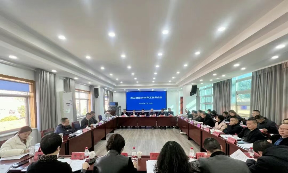 1月14日下午,岳阳市卫健委召开2026年工作务虚会,深入学习贯彻党的二十届四中全会、省委十二届九次全会、市委八届九次全会和全市“两会”精神,认真落实党中央、省委、市委关于卫生健康工作的决策部署,分析当前形势,系统谋划未来五年目标任务和2026年工作举措,为新的一年开好局、起好步,统一思想,凝聚合力。党组书记、主任蔡吉伟主持会议并讲话。