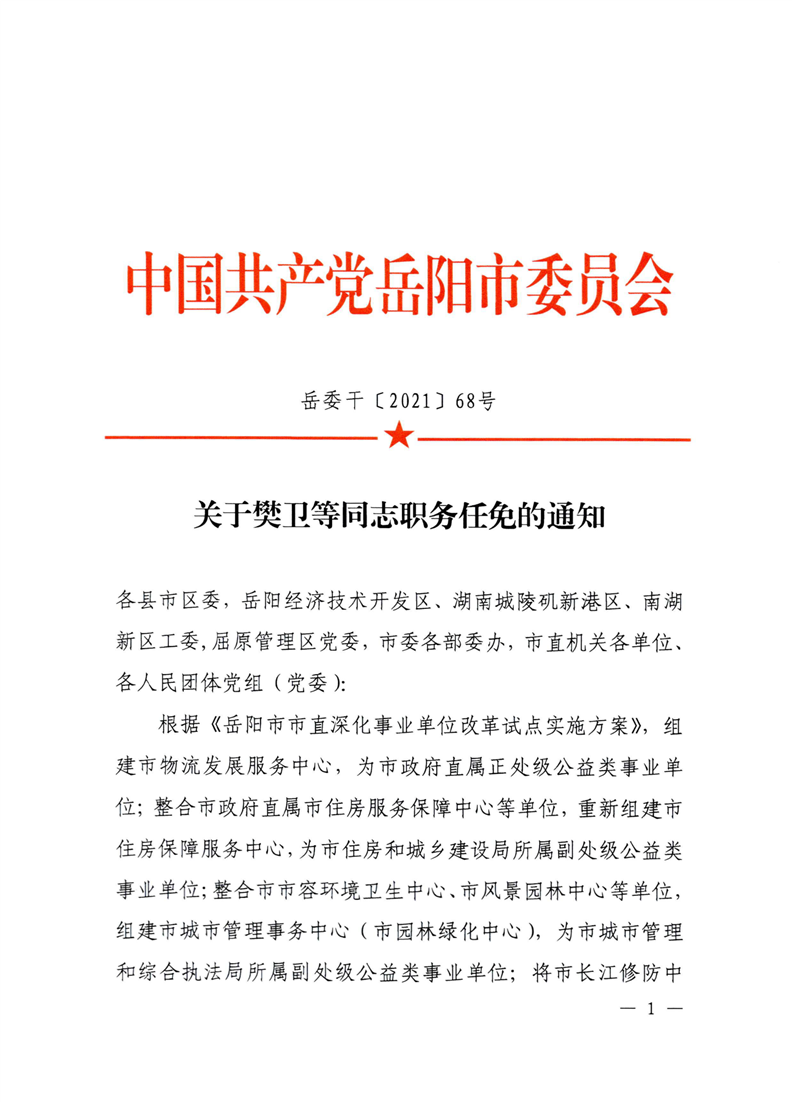 关于樊卫等同志职务任免的通知