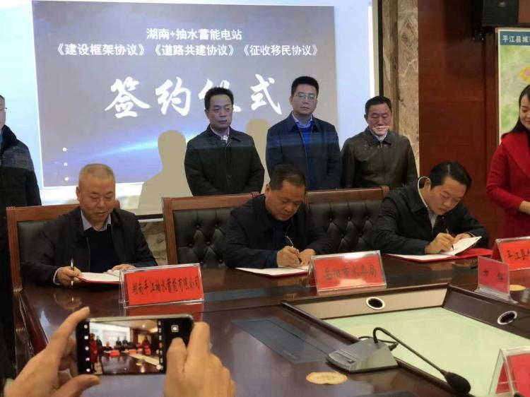 2018年12月17日上午10时,平江抽水蓄能电站建设征地和移民安置协议签约仪式在平江县档案馆举行,标志着该项目正式进入实施阶段。岳阳市水务局局长陈正文代表监管方出席仪式并签约,平江县委书记汪涛;县委副书记、县长黄伟雄;湖南平江抽水蓄能有限公司总经理唐建国;平江县在家的县级领导、相关部门及乡镇负责人出席了签约仪式。