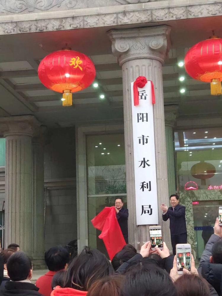 2019年1月29日,岳阳市水利局正式挂牌。市人民政府副市长李激扬出席揭牌仪式并讲话,市水利局领导班子及干部职工参加了揭牌仪式。
