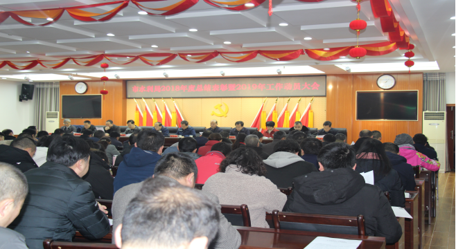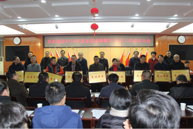 2月12日上午,岳阳市水利局召开2018年度工作总结表彰暨2019年工作动员大会,总结回顾过去一年的工作,动员部署2019年工作,安排当前重点工作。局党组书记、局长陈正文出席并作工作报告。局党组副书记、副局长刘利文主持会议。局党组全体成员、全体干部职工近200人参加会议。