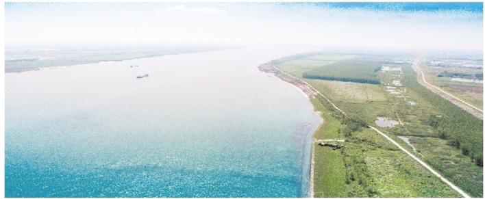 图为岳阳市君山区江陵村长江沿岸,防洪林和复绿林生机盎然