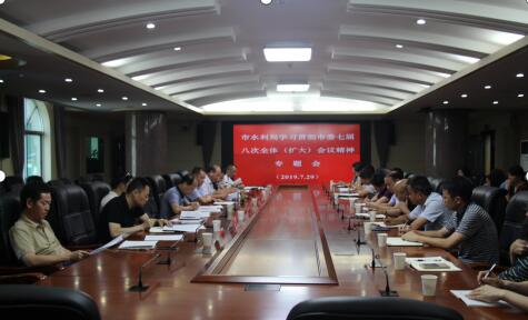 7月29日,市水利局党组书记、局长陈正文主持召开专题会议传达学习贯彻市委七届八次全体(扩大会议)精神,局党组成员及科级以上干部职工参加会议。