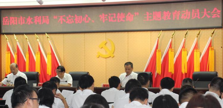 9月17日下午,岳阳市水利局召开“不忘初心牢记使命”主题教育动员大会。深入学习贯彻习近平总书记在中央“不忘初心、牢记使命”主题教育工作会议上的重要讲话精神,按照中央部署和省、市委要求,对全局“不忘初心、牢记使命”主题教育工作进行全面部署。市委主题教育第十指导组组长刘宇赤参加。