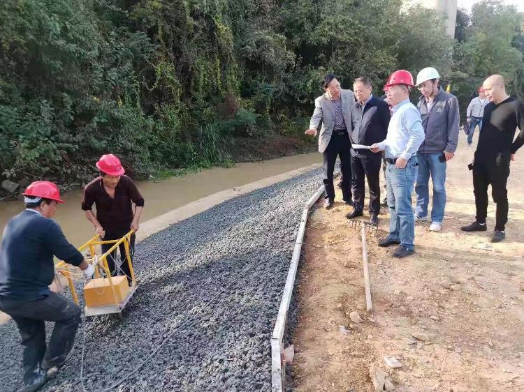 10月30日,市水利局党组书记、局长陈正文赴施工现场,督查施工进度质量。陈正文一行首先来到了巴山港段,河道内部已全部进行清淤,河道两岸浆砌石脚槽已经砌筑完成,部分已进行生态护坡。陈正文观看了绿化砼护坡浇筑现场,并指出河道生态护坡符合国家生态环保发展要求,要予以大力推广,要建设河流各河段特色性的水岸,要生态化、景观化。陈正文沿木里港而上,沿途查看堤防加高培厚和生态护坡等工程。通过施工前后对比照,可以直观的感受到原来溃堤处已经修复,杂树灌木丛生、矮小单薄、最窄处面宽仅1米的堤防全部修成面宽4米,高程30.87米的标准堤防,大堤坡面整洁成型,部分已进行草皮护坡,有效防止水土流失,改善水生态环境,行洪能力大大提升。陈正文指出河道治理要保护生态环境,提高治理水平。最后来到黄梅港分洪隧道部分,隧道出口段已采用锚杆及土钉墙支护等措施稳固开挖面,正在进行旋挖灌注桩施工。现场中,陈正文仔细询问,了解施工进度、施工质量、施工难点及安全工作的开展等事宜。项目法人代表谢月秋就领导关心问题一一解答,认真的对项目开展详细情况作了汇报。陈正文要求,要进一步加快施工进度,加强安全生产管理,严控工程质量,确保建成优质工程。