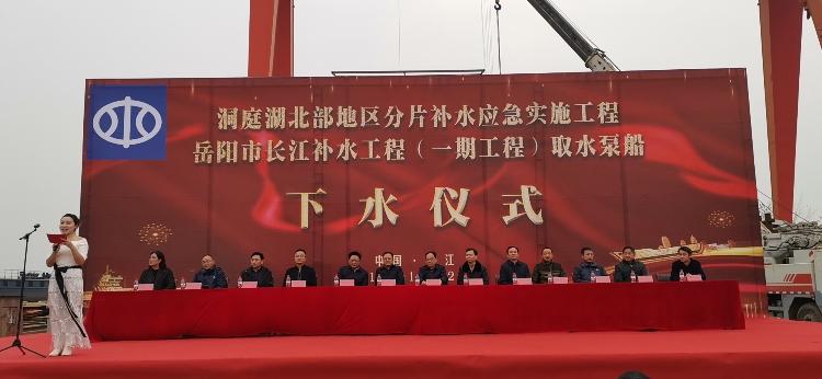 11月28日上午,岳阳长江补水工程取水泵船在湖北省枝江市长江水域举行下水仪式,按下了工程建设的“快进键”。岳阳市水利局党组书记、局长陈正文以及枝江市人民政府、泵船建造的设计单位、监理单位、建造单位相关负责人等参加了仪式。