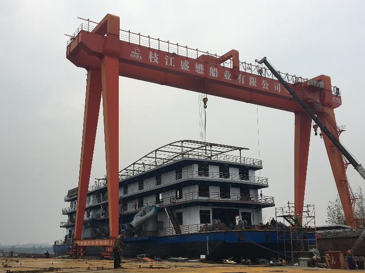 取水泵船是岳阳长江补水工程的核心和关键,该泵船由枝江盛懋船业有限公司打造,长66米,宽14米,功率2800千瓦,是国内同类型最大取水泵船。取水泵船的顺利下水是岳阳长江补水工程建设中的重要里程碑,标志着省委省政府、市委市政府的决策部署得到认真落实,标志着华容河及华洪运河沿线水资源季节性缺水和水质性缺水问题将得到有效解决。