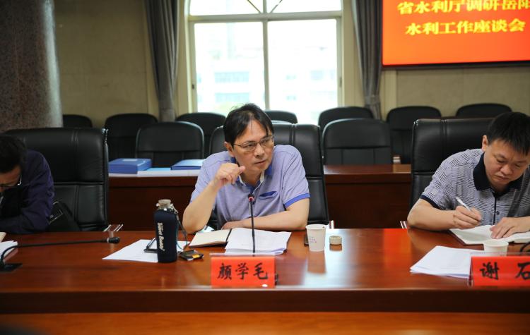 颜学毛一行先到岳阳市水利局召开水利局长座谈会,听取了岳阳市、县两级水利工作情况汇报。随后,实地察看了长江补水工程洪水港取水枢纽、大通湖东垸分洪闸、新华垸华容河南支轭头湾堤段外滑坡险工等地。