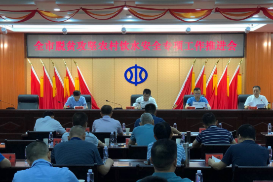 为全面打好脱贫攻坚收官战,进一步做好我市贫困人口饮水安全保障工作,切实提升全市农村饮水水质达标率,7月1日上午,市政协主席、脱贫攻坚大会战指挥部指挥长徐新楚在市水利局组织召开全市脱贫攻坚农村饮水安全专项工作推进会,副市长杨昆主持会议。市水利局、市扶贫办、市疾控中心负责人,各地党委副书记、分管副县(市、区)长和水利、疾控部门负责人参加。
