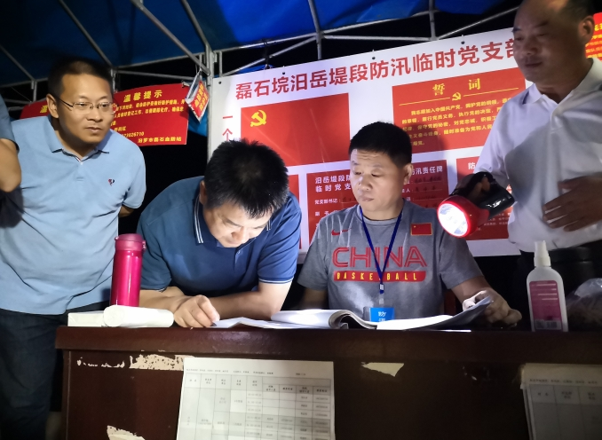 “今晚共有几人值班?巡堤查险分工是如何落实的?”“夜里巡查发现新的险情没有?记录是否及时、详细、完整?”……来到“四垸”一线防洪大堤,徐新楚沿途仔细检查巡堤和涵闸、管涌值守人员到岗执勤情况,并认真核对当班记录,对发现的问题当场交办。他对值守人员再三强调,夜间巡堤查险责任重大,要打起百倍精神,扛起千钧重担,提高万分警惕,严格按规程执行,不漏掉一处隐患,不放过一处险情,确保每段堤防平安。