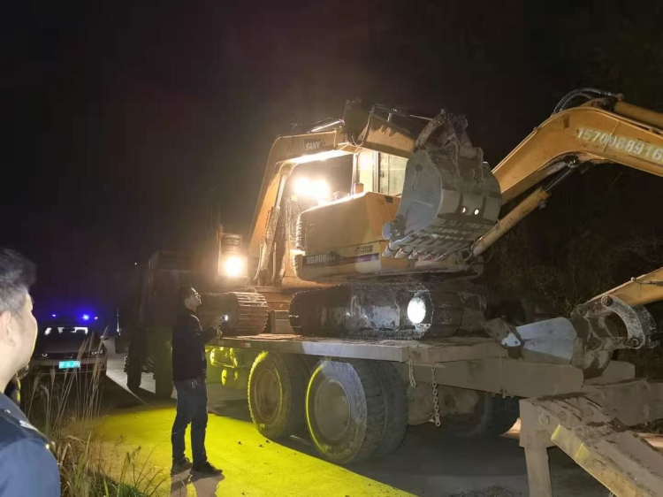 3月13日,岳阳市水务综合执法支队联合市公安局水警支队、岳阳县水政大队联合执法队伍等20余人日常巡查中,在岳阳县筻口镇漆市村游港河河滩发现一起非法采砂行为,现场有两台挖机正在河滩上进行挖砂作业,河滩面已形成了近百平米的裸露块,深度达到1—2米,执法人员现场责令其进行停止违法行为。当晚11点,联合执法人员将涉案的两台挖机扣押至岳阳县水政大队执法点,并连夜对相关涉案人员进行调查询问。案件正在进一步调查办理中。这是《长江保护法》、《湖南省河道采砂管理条例》实施以来我市查获的首起河道非法采砂案。
