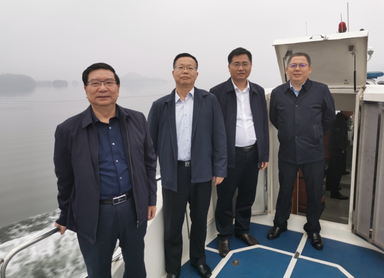 陈阁辉一行从铁山水库大坝码头乘船巡湖,实地查看库区水生态环境和水源地保护情况;在铁山水库大坝、溢洪道等地,详细了解水库大坝及水库枢纽设施的运维状况。
