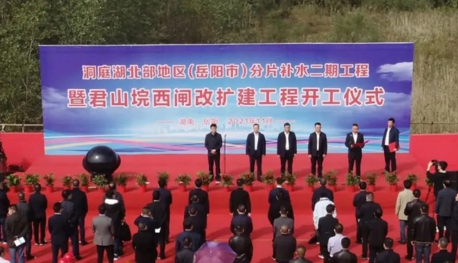 11月11日,洞庭湖北部地区(岳阳市)分片补水二期暨君山垸西闸改扩建工程开工仪式在君山区举行。省洞庭湖水利事务中心主任葛国华出席并讲话,副市长陈阁辉宣布开工,市政府副秘书长樊卫,市水利局党组书记、局长何晖以及君山区、华容县相关负责人参加。