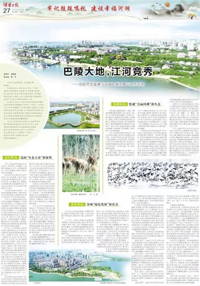 在齐抓共管、多措并举的市县乡村四级河湖长管理机制下,一个个水环境的重点难点问题迎刃而解;一条条生态江河,像一条条玉带,镶嵌在巴陵大地上。