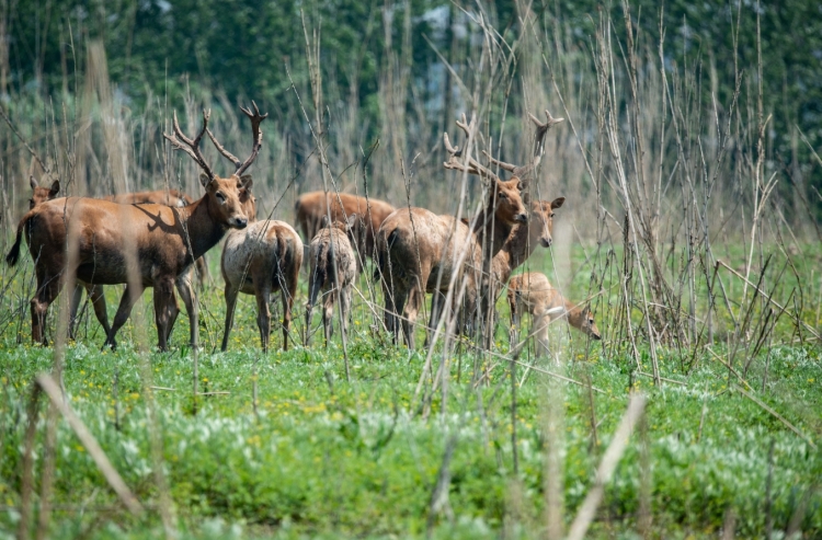 (洞庭湖畔,麋鹿成群。 杨一九 摄)