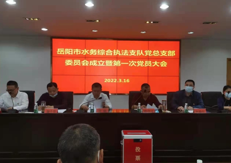 3月16日,市水利局党组成员、副局长徐育才主持召开中共岳阳市水务综合执法支队党总支部委员会成立暨第一次党员大会。市纪委派驻纪检组、机关党委、机关纪委相关负责同志及支队36名党员参加了会议。
