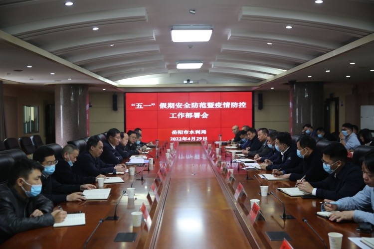 4月29日,市水利局党组书记、局长何晖主持召开会议,学习传达省、市“五一”假期安全防范暨疫情防控工作电视电话会议精神,安排部署相关工作,局党组班子成员、各科室单位负责人参加会议。