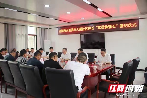 当天,岳阳市水利局与大荆镇大荆社区现场签订林长“党员协理长”党建合约。双方约定:开展党建共建,以“四亮创建”为抓手,深入推进林长制工作走实走细;组织党员开展“巡山”护林等活动,切实摸清和帮助解决国土增绿、森林提质、资源保护等方面实际问题;开展“守护好一江碧水”“两山”理论政策集中宣讲活动;支持和帮助基层护林员解决实际困难等。