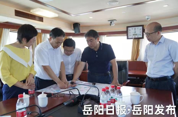 从岳阳海事码头登船至月山综合执法码头,曹普华沿湖查看水环境治理工作,细致了解洞庭湖水系分布、容积水量以及当前水位等情况,叮嘱相关部门负责人进一步加大水面漂浮物和湖岸垃圾清理力度,落实落细禁捕退捕工作各项责任和措施。