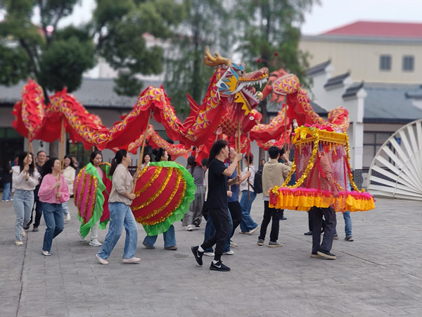 在“长乐非遗文化馆”,大家热情投入击鼓、舞龙、踩高跷、滚铁环、做艾草养生锤等活动,亲身体验非遗技艺的精妙。在上市街下市街故事会馆、国家级非遗“长乐抬阁故事会”,大家观看了彩灯、高跷道具与百年巡游影像,感受“古镇今犹在,故事越千年”的民俗魅力。走进中共湘北特委旧址,在斑驳砖墙与历史展陈中感悟湘楚文化中的红色基因。