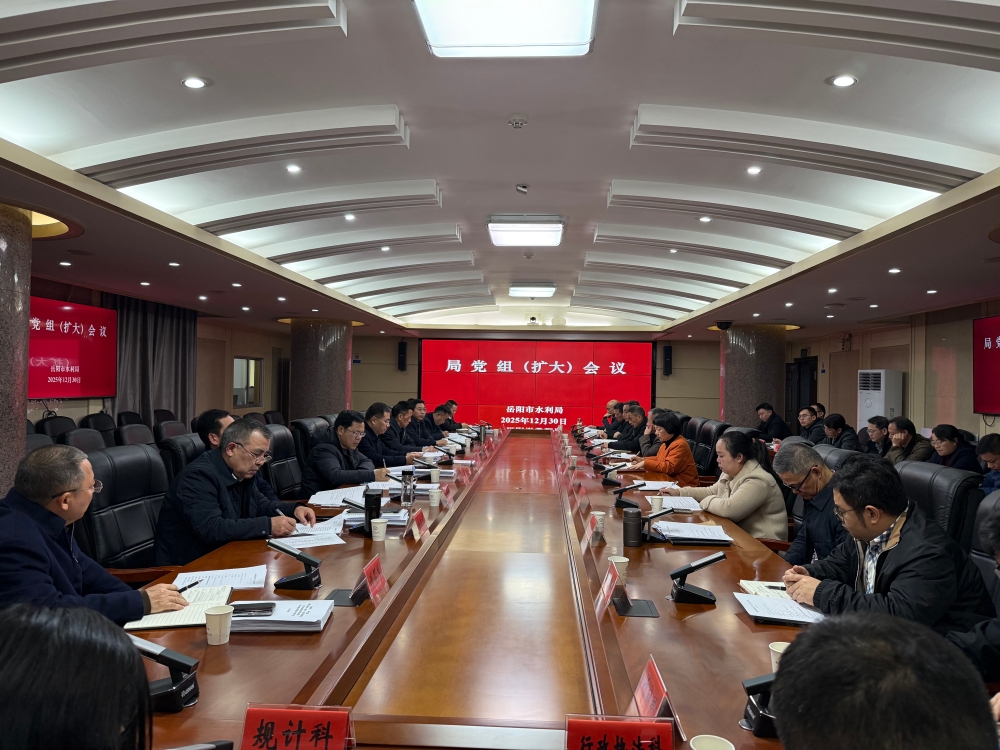 12月30日,市水利局党组书记、局长何晖主持召开局党组(扩大)会,传达学习岳阳市第九届人民代表大会第六次会议、政协岳阳市第九届委员会第五次会议精神,研究贯彻落实措施。局领导班子成员、调研员,局机关各科室、局属各单位主要负责人参加。