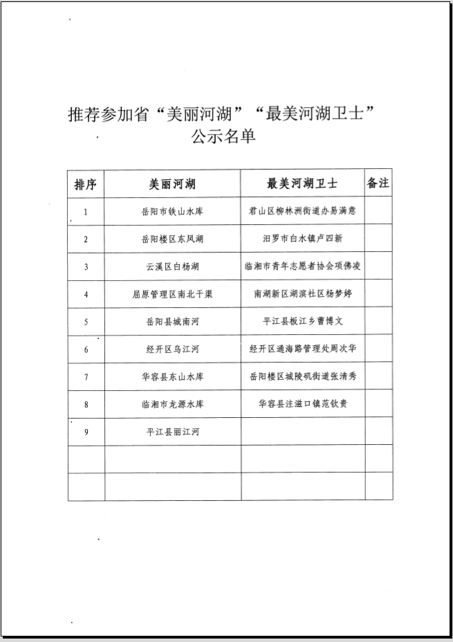 关于“美丽河湖”“最美河湖卫士”推荐参加省级评选名单公示