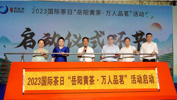 南湖碧于天,茶香满巴陵。5月21日,“2023国际茶日‘岳阳黄茶·万人品茗’活动”在岳阳茶博城拉开帷幕,岳阳市委副书记汪涛宣布活动启动。市人大常委会副主任田文静,市政协副主席范泽容,南湖新区党工委书记王亚丹等领导出席活动,区党工委副书记、管委会主任潘宏军致欢迎辞。