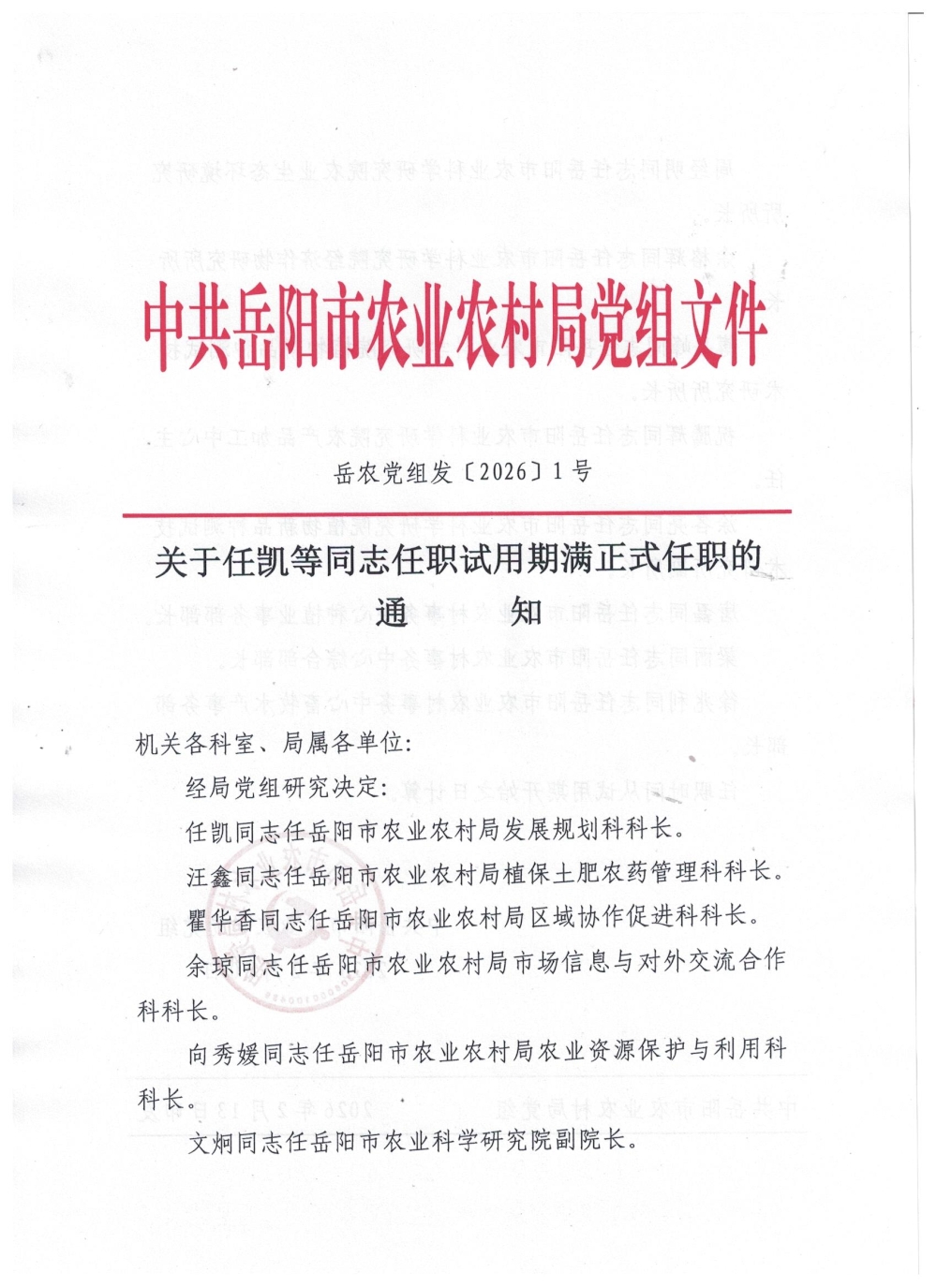 关于任凯等同志任职试用期满正式任免的通知