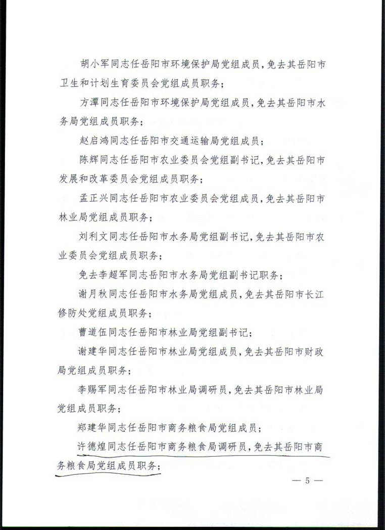 关于陈文斌、许德煌等同志职务任免的通知