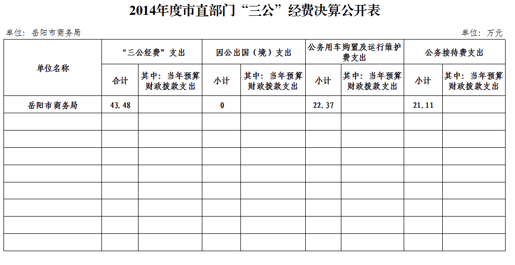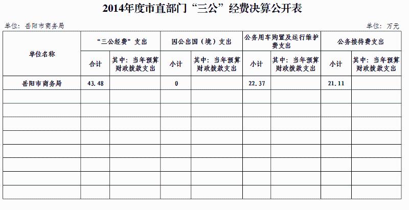 2014年度岳阳市商务局“三公”经费决算公开表