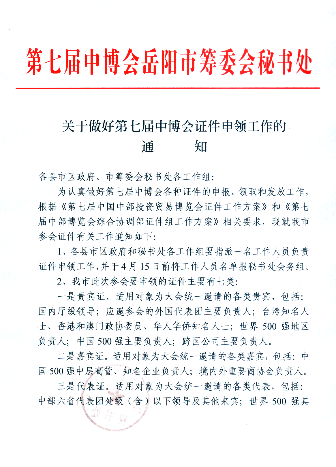 关于做好第七届中博会证件申领工作的通知
