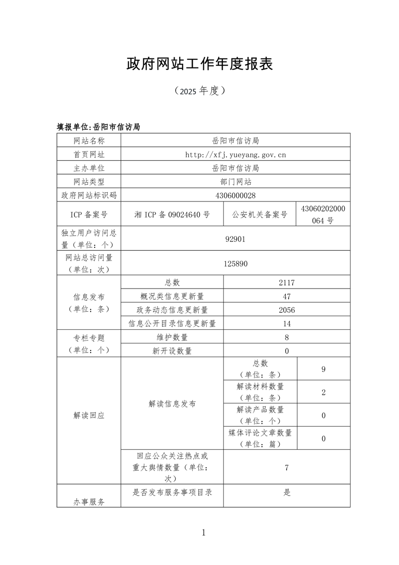 岳阳市信访局2025年政府网站工作年度报表