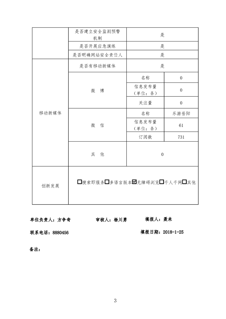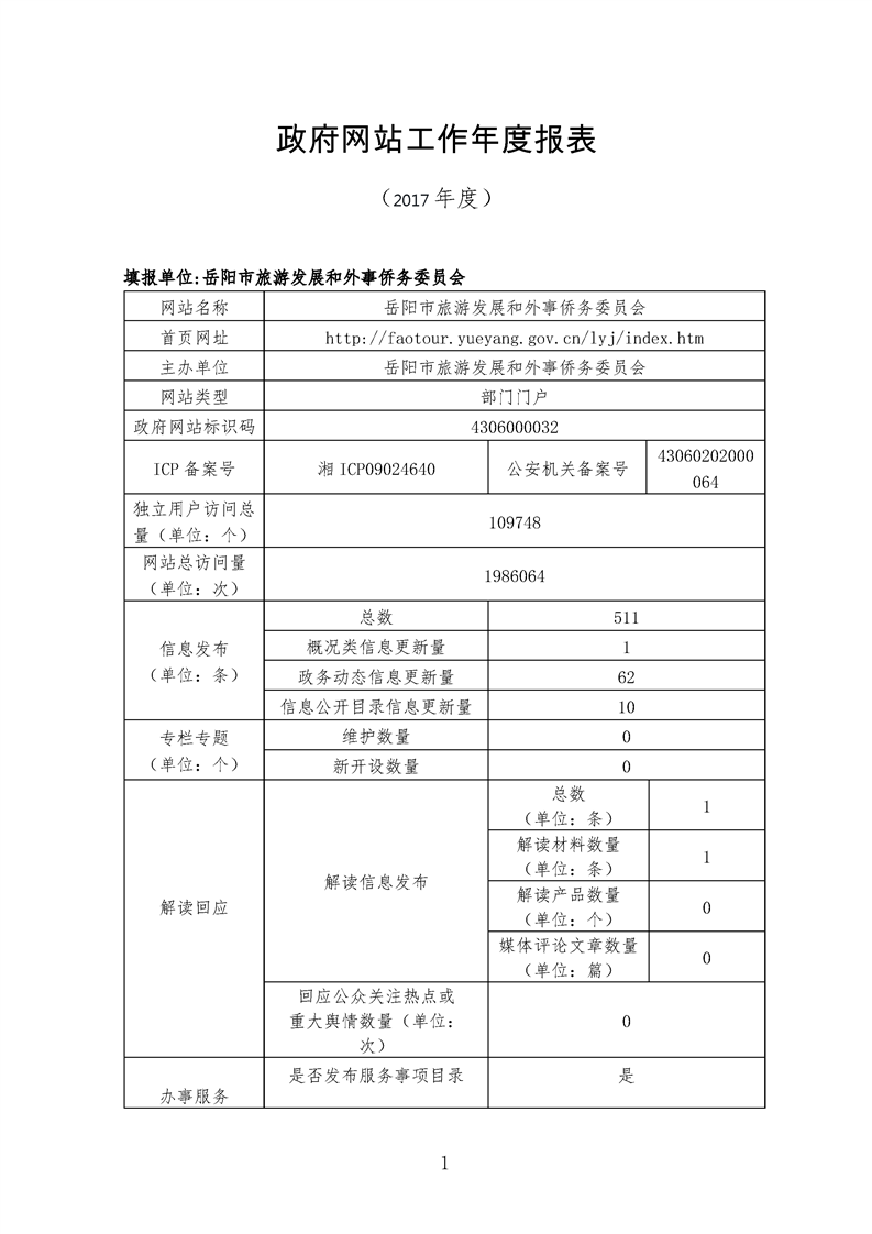 岳阳市旅游发展和外事侨务委员会网站工作2017年度报表