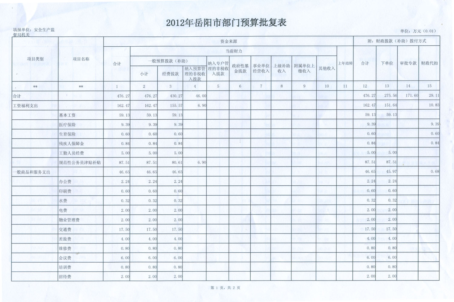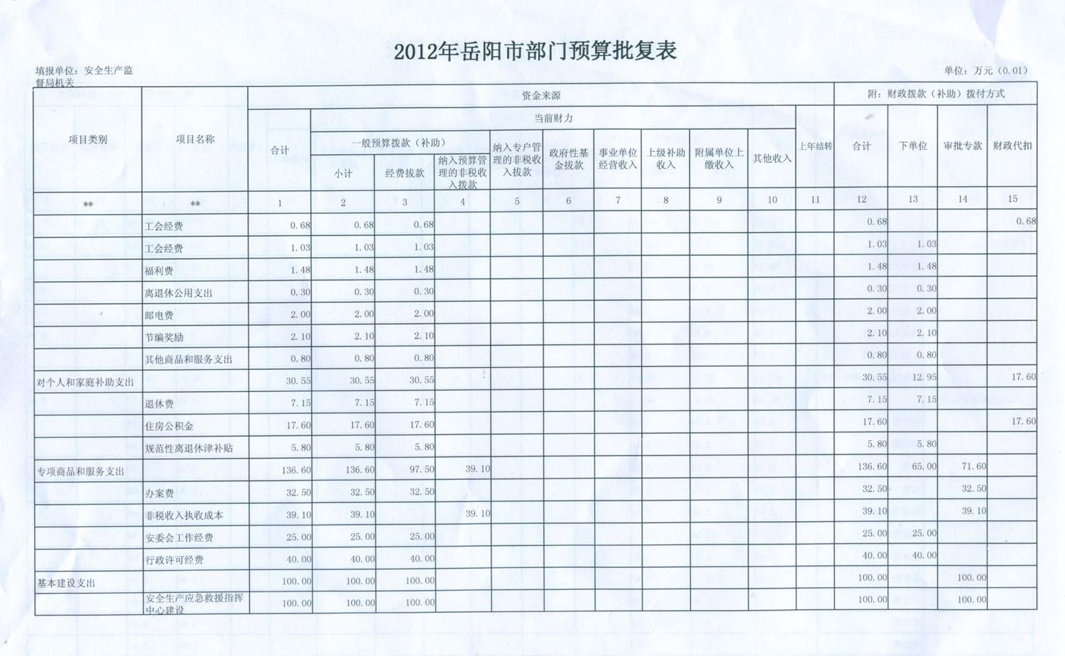 2012年市安监局财政预算