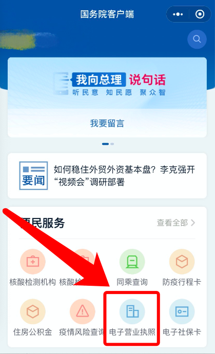 由国家市场监管总局推出的“电子营业执照”在国务院客户端小程序上线,
