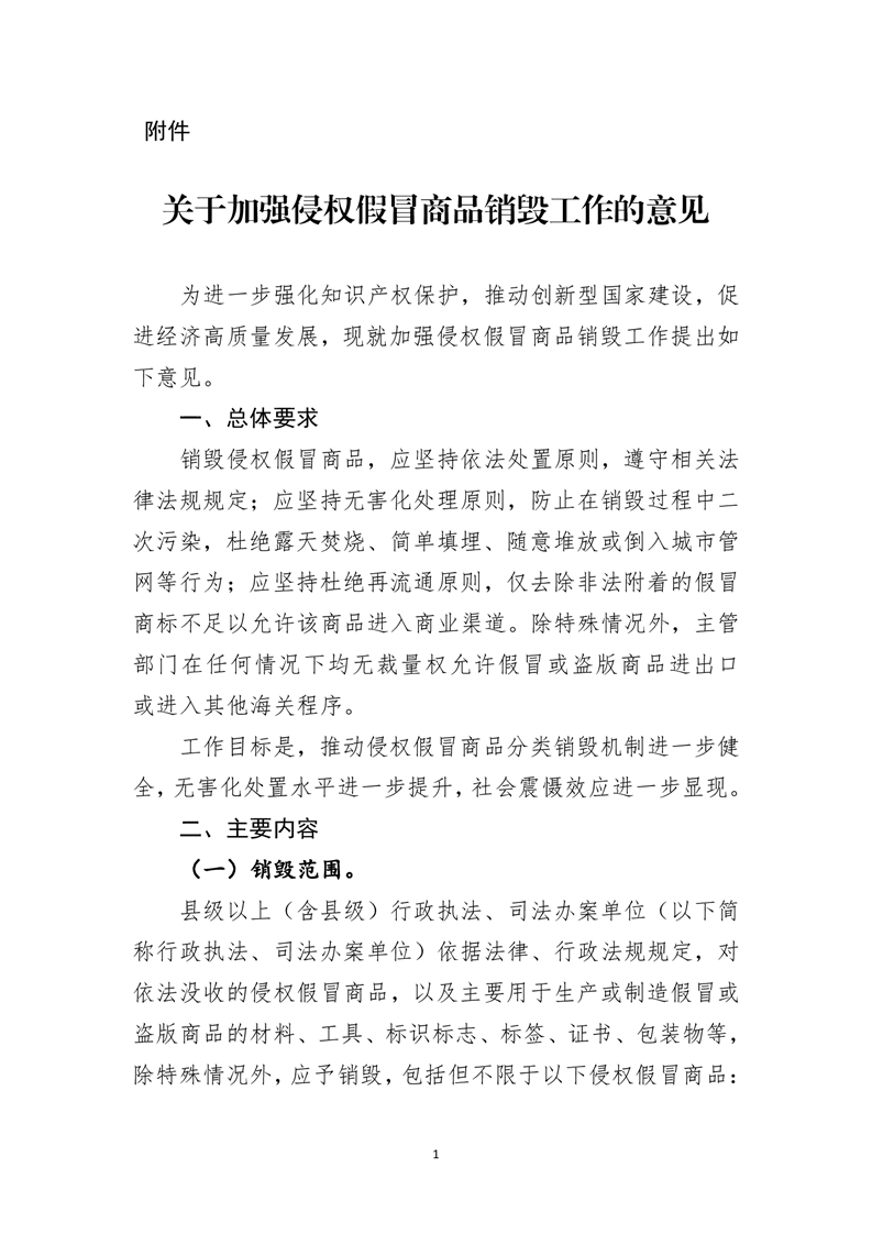 附件:关于加强侵权假冒商品销毁工作的意见