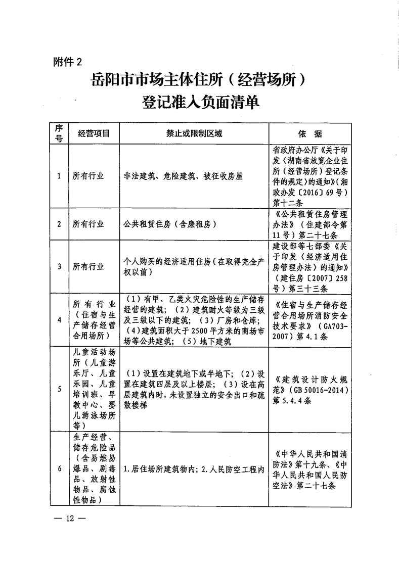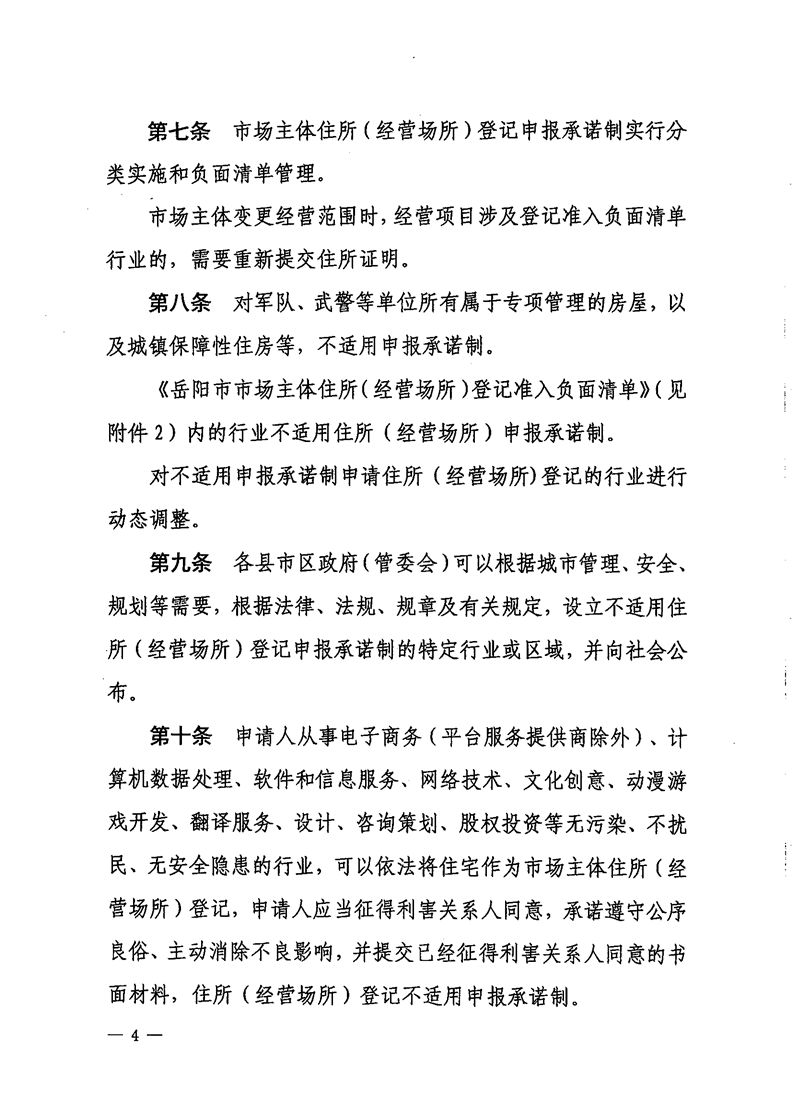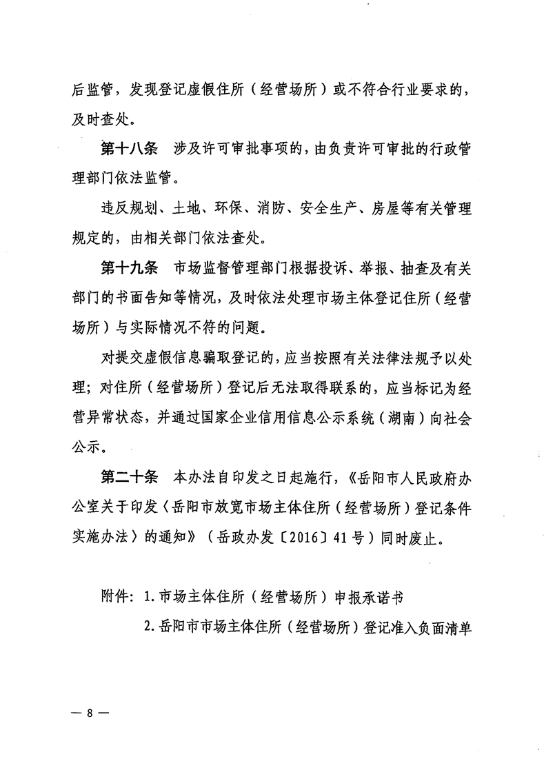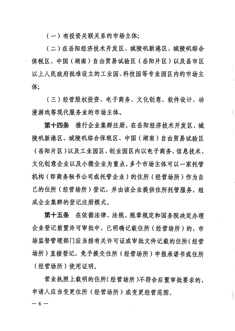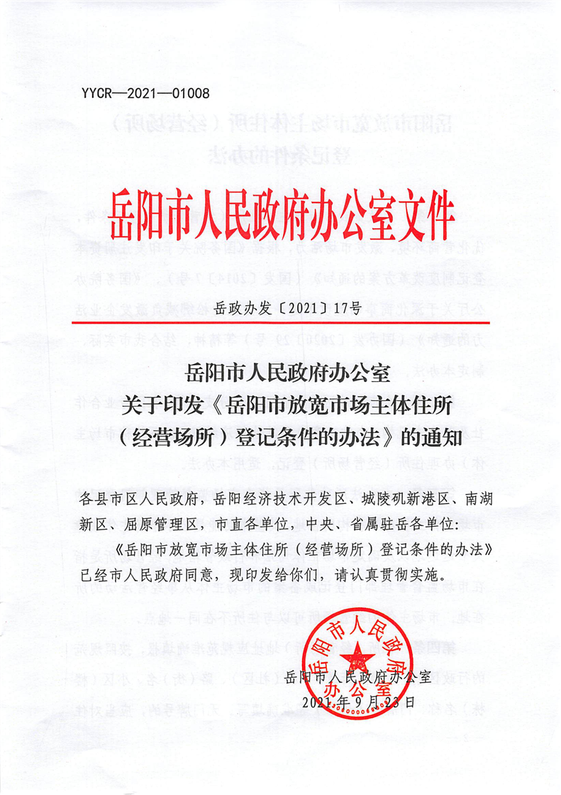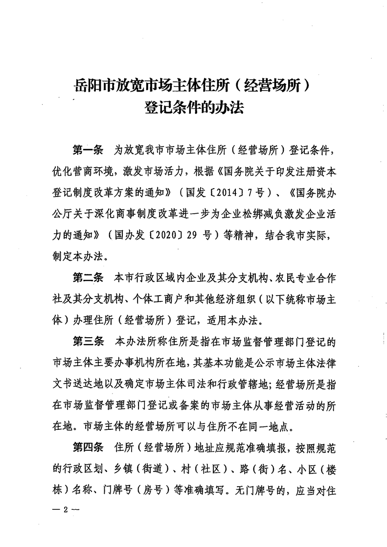 岳阳市放宽市场主体住所经营场所登记条件的办法通知