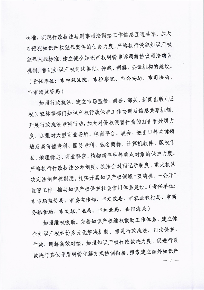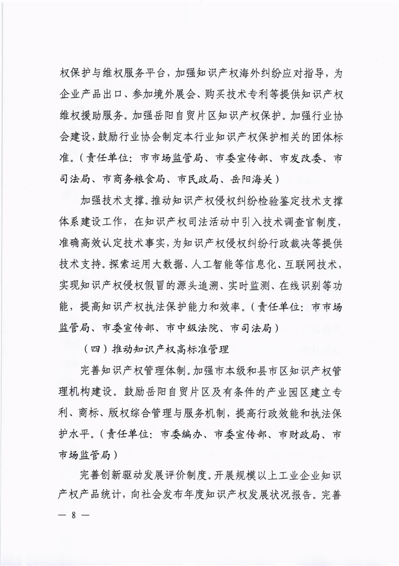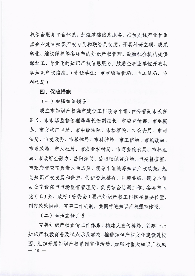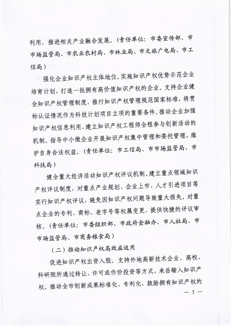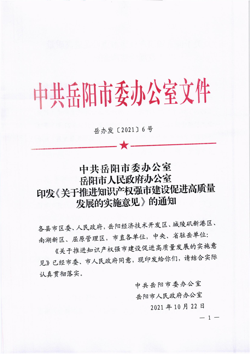 中共岳阳市委办公室 岳阳市人民政府办公室印发《关于推进知识产权强市建设促进高质量发展的实施意见》的通知