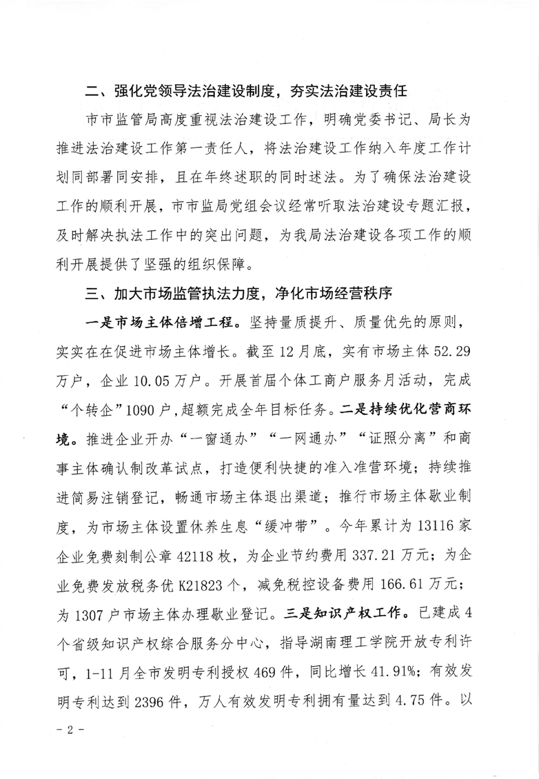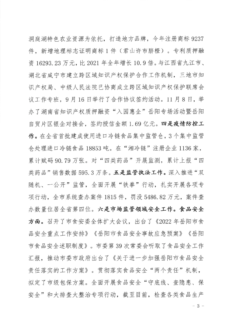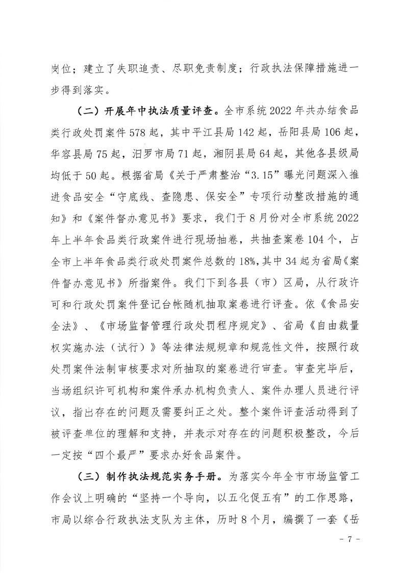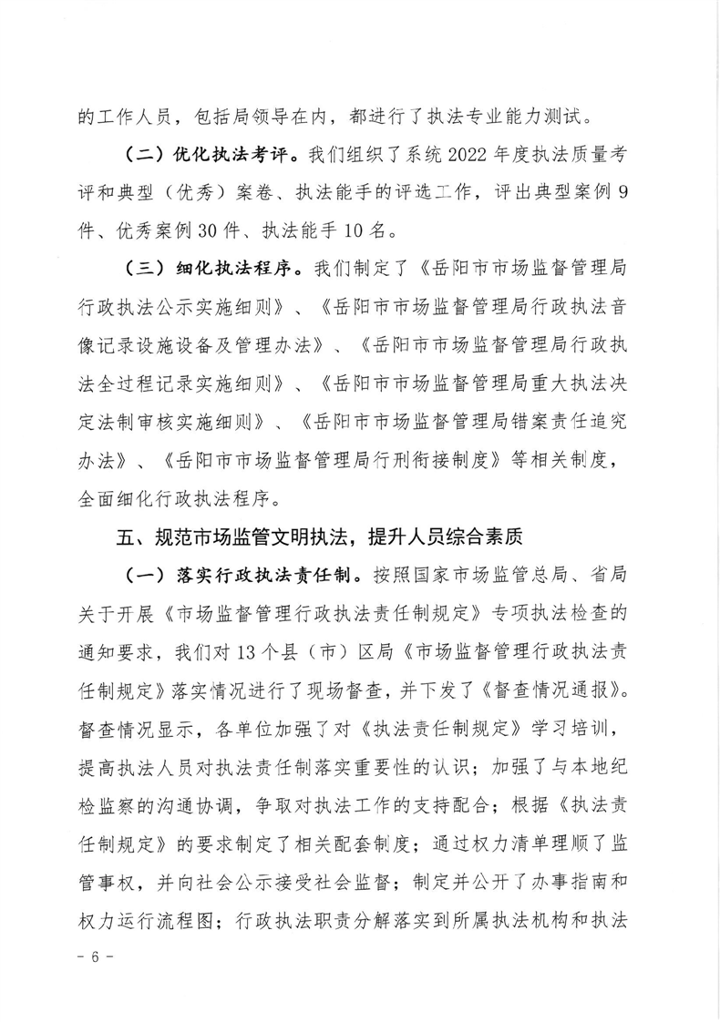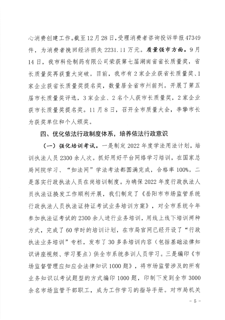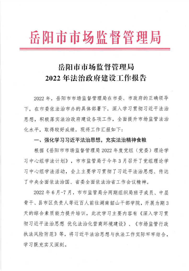 岳阳市市场监督管理局2022年法治政府建设工作报告