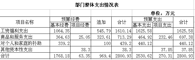 我局2015年基本支出中,人员经费2065.7万元,因工资调整,增幅较大;公用经费实际支出464.92万元,相关费用见下表:(单位:万元)