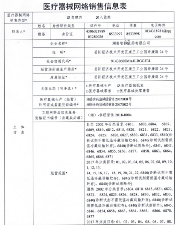 根据《医疗器械网络销售监督管理办法》和《关于实施<医疗器械网络销售监督管理办法>有关事项的通知》之规定,经形式审查,我局对以下医疗器械经营企业办理了网络销售备案,现将备案信息予以公开,详见网络销售信息表: